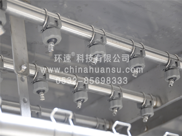 噴嘴采用食品級耐高溫塑料噴嘴或不銹鋼噴嘴,清洗角度可調(diào);上下左右采用不同型號,避免死角,保證清洗潔凈度;