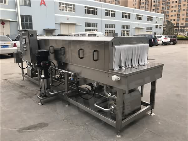 大型塑料筐清洗機清洗流程分為預洗、高壓清洗、漂洗、凈水沖洗四個階段,本機開啟后,由人工送料至噴淋清洗機鏈條軌道或由輸送連接自動進料,先進行浸泡;接著是高壓水流清洗以達到滅菌的作用;第三階段清洗水流漂洗容器表面污漬,進行再次滅菌;最后透徹沖洗,達到無菌的目的。我司自主研發(fā)的三級水箱控菌過濾系統(tǒng)確保循環(huán)用水無廢渣、大顆粒物質(zhì),保證清洗流暢、無堵塞。塑料筐清洗機具備權(quán)威檢測,經(jīng)國外使用客戶對現(xiàn)場清洗后容器進行細菌檢測,清洗后容器的菌落總數(shù)<10。符合國家食品安全標準。