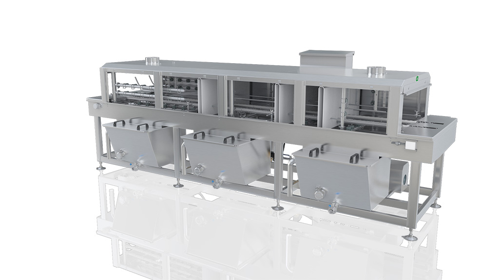 3、漂洗階段:合肥洗筐機(jī)的清洗水流將容器表面的殘留污漬漂洗掉,同時(shí)對(duì)容器進(jìn)行再次滅菌。