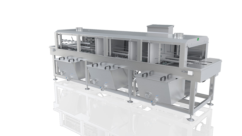 自動周轉(zhuǎn)箱清洗機(jī)主體采用全304不銹鋼材料制作,衛(wèi)生、干凈;