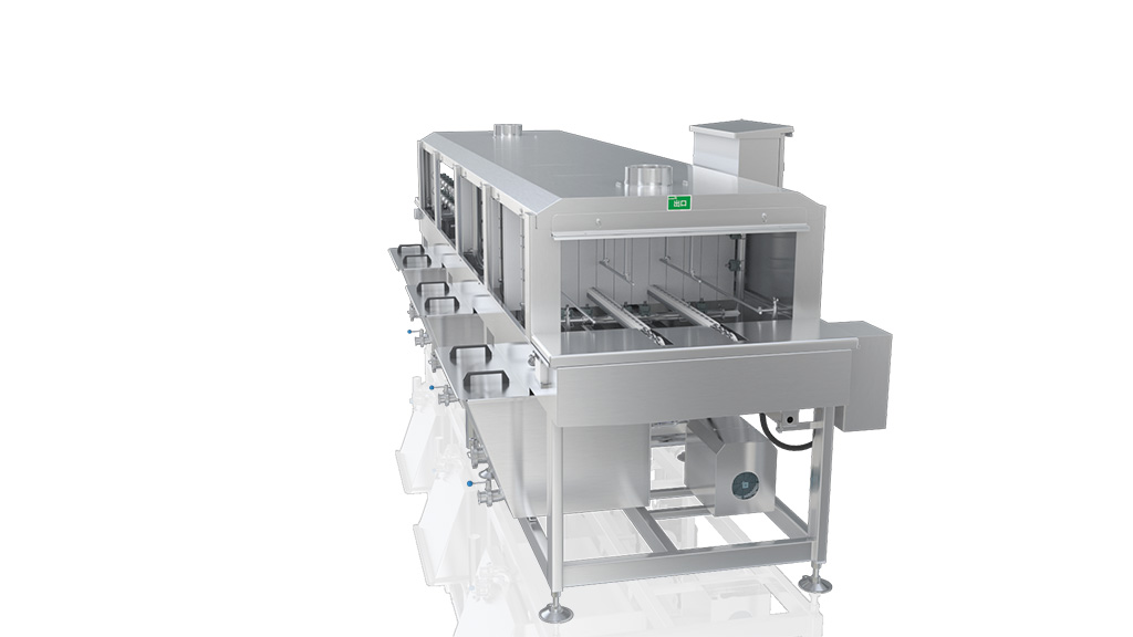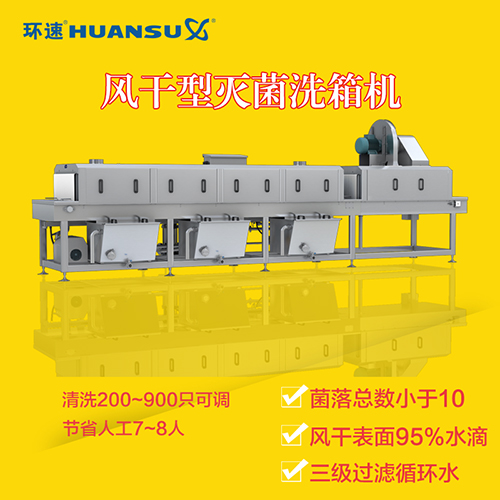 多功能洗筐機(jī)清洗流程分為預(yù)洗、高壓清洗、漂洗、凈水沖洗四個(gè)階段,洗筐機(jī)開(kāi)啟后,由人工送料至噴淋清洗機(jī)鏈條軌道或由輸送連接自動(dòng)進(jìn)料,先進(jìn)行浸泡;接著是高壓水流清洗以達(dá)到滅菌的作用;第三階段清洗水流漂洗容器表面污漬,進(jìn)行再次滅菌;最后透徹沖洗,達(dá)到無(wú)菌的目的。我司自主研發(fā)的三級(jí)水箱控菌過(guò)濾系統(tǒng)確保循環(huán)用水無(wú)廢渣、大顆粒物質(zhì),保證清洗流暢、無(wú)堵塞。塑料筐清洗機(jī)具備權(quán)威檢測(cè),經(jīng)國(guó)外使用客戶對(duì)現(xiàn)場(chǎng)清洗后容器進(jìn)行細(xì)菌檢測(cè),清洗后容器的菌落總數(shù)<10。符合國(guó)家食品安全標(biāo)準(zhǔn)。