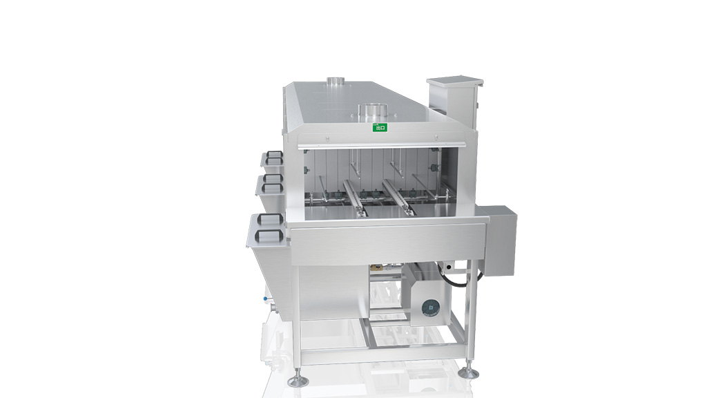 托盤(pán)式洗筐機(jī)設(shè)備浸泡水槽分成為兩個(gè)浸泡階段;