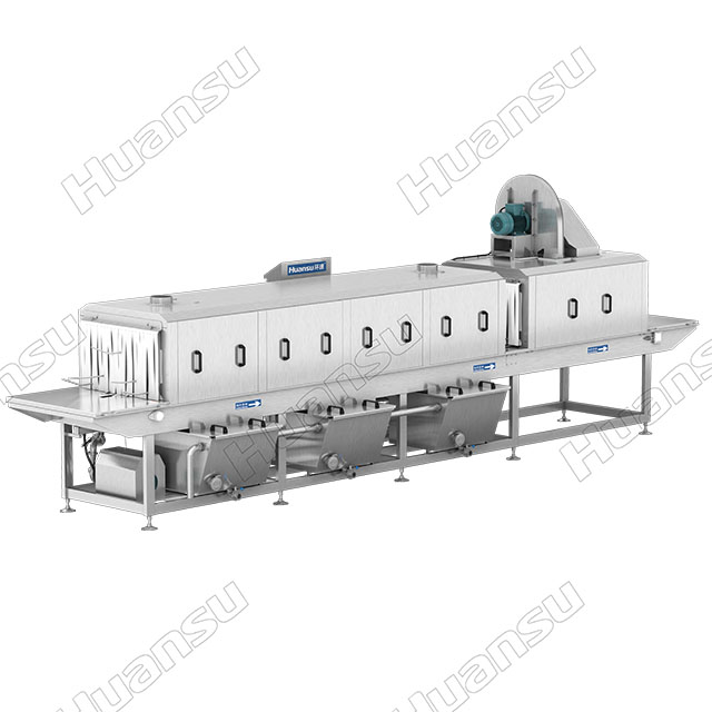 基于以上的操作,企業(yè)只需要在進(jìn)出口安排工作人員即可。而他的工作就是將有污漬、油污的塑料膠筐放進(jìn)清洗機(jī)和將洗干凈的塑料膠筐拿出來進(jìn)行下一步的工作。安排兩個人分別負(fù)責(zé)也是合理的。若是全程用傳統(tǒng)的人工清洗,而且要形成流水線的人工操作,保守估計需要至少8個人。這種方式耗費(fèi)的時間和人工成本相當(dāng)高了。一臺塑料膠筐清洗機(jī)只需要四步,就可以將容器清洗干凈,不留污漬。待洗的容器由不銹鋼鏈條輸送,通過預(yù)洗浸泡、高壓清洗、漂洗、凈水洗到最后干凈地輸出。