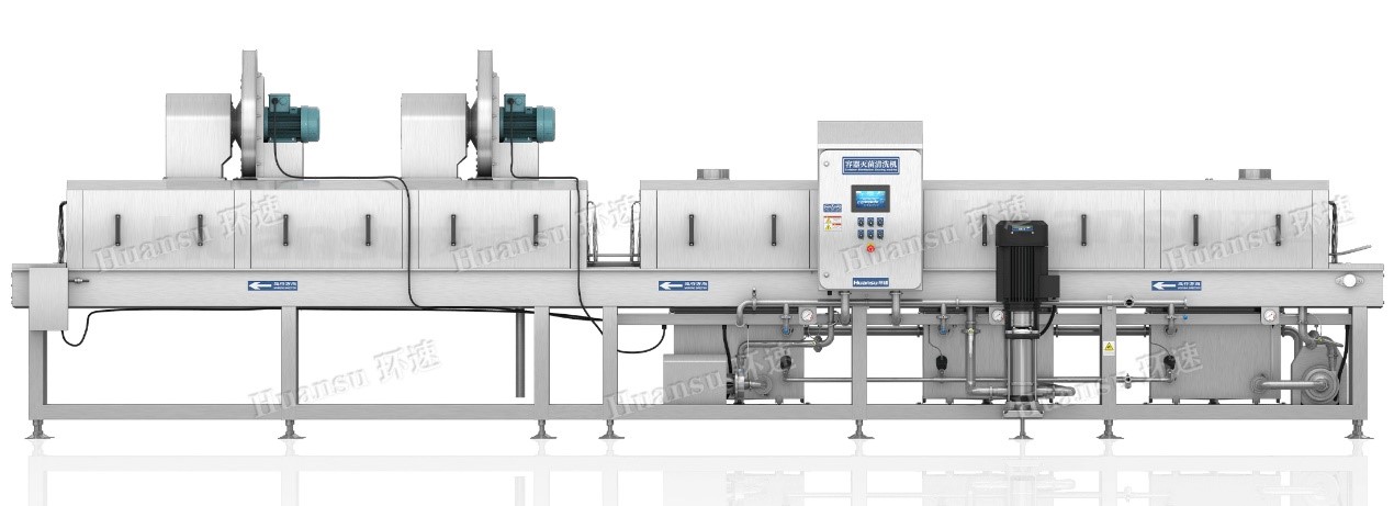 對(duì)于周轉(zhuǎn)筐是否能做到潔凈清洗滅菌,一直是食品行業(yè)不斷待解決的難題,以往的機(jī)器清洗往往存在著諸多問題,比如清洗不透徹,帶來許多食品安全隱患;風(fēng)干不透徹,對(duì)暫存涼曬干容器帶來一定壓力;清洗過程中添加的大量清洗機(jī)與洗滌液造成排放困擾,容易對(duì)環(huán)境產(chǎn)生污染;設(shè)備本身無法做到透徹清洗,滋生大量細(xì)菌,變成二次污染源,污染周轉(zhuǎn)筐與加工車間。因此對(duì)于加工車間來說,一臺(tái)性能優(yōu)異的塑料筐清洗機(jī),才能將大量帶有污漬的周轉(zhuǎn)筐清洗干凈,達(dá)到衛(wèi)生標(biāo)準(zhǔn)。針對(duì)于這個(gè)需求,環(huán)速研發(fā)了新式塑料筐清洗機(jī),快速高效有保障。