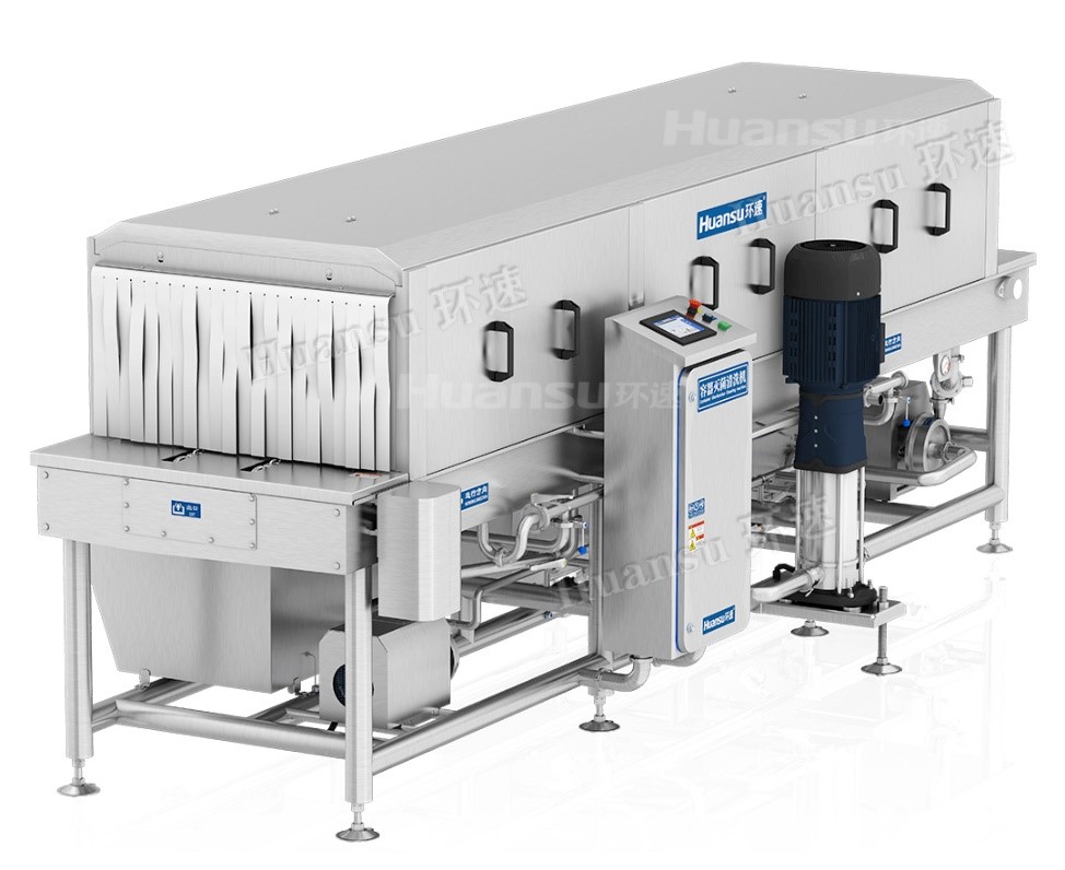 隨著社會的發(fā)展,越來越多的行業(yè)正向高效率的方向持續(xù)發(fā)展,像食品行業(yè)不斷出現(xiàn)了中央廚房進(jìn)行集中生產(chǎn)。一些需要用到周轉(zhuǎn)筐的食品廠已逐漸從人工清洗轉(zhuǎn)變?yōu)闄C(jī)械清洗,正是因?yàn)槿缃窆と讼MべY高,但周轉(zhuǎn)筐卻無法透徹清洗干凈,再加上天冷不愿意動(dòng)手等諸多原因。而周轉(zhuǎn)筐清洗機(jī)不僅清洗效果好,可以將容器清洗干凈,且清洗速度快,還可以做到人工清洗無法做到的烘干消毒的作用。環(huán)速研發(fā)的周轉(zhuǎn)筐清洗機(jī)操作簡單便捷,快速完成容器清洗,正適合需要清洗大量周轉(zhuǎn)筐的食品加工廠。