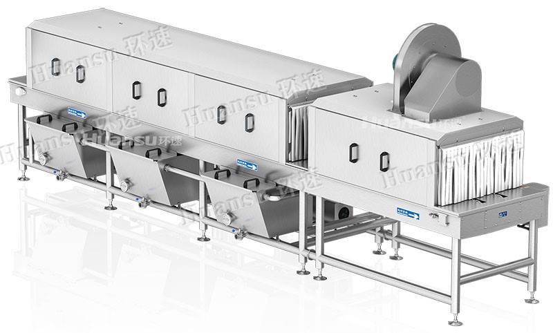隨著社會的進步,人民生活品質的不斷提高,食品安全已經是一個高度重視的問題,消費者不但追求要吃得好,更要吃的安全健康有保障。為了保障食品的質量安全問題,許多食品加工廠開始了食品工業(yè)化的進程,從前期的清洗加工,到中間的調理,再到最后的冷卻包裝,都開始減少人工的投入,使用機械設備去進行相關的工作。除了這些階段,周轉容器的清洗也是人們較為關注的一個問題,使用人工清洗清洗效率低,清洗不干凈,而機械設備清洗也會出現風干不透徹等問題。為此,環(huán)速研發(fā)了滅菌洗箱機,快捷清洗無煩惱。