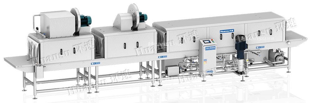 在食品運(yùn)輸過程中離不開周轉(zhuǎn)容器的存在,這些周轉(zhuǎn)容器憑借著質(zhì)地堅(jiān)硬、可循環(huán)使用、衛(wèi)生安全等諸多優(yōu)點(diǎn)成為了運(yùn)輸過程中的寵兒。在運(yùn)輸過程中,周轉(zhuǎn)箱會粘上大量的灰塵,如果不進(jìn)行透徹的清洗,長年累月的灰塵與污漬將會對食品造成污染。因此為了保障人們的食品健康安全,周轉(zhuǎn)容器的滅菌清洗便十分重要。為了解決這一問題,環(huán)速研發(fā)了周轉(zhuǎn)箱清洗機(jī),批量無死角清洗,來保障飲食安全問題。