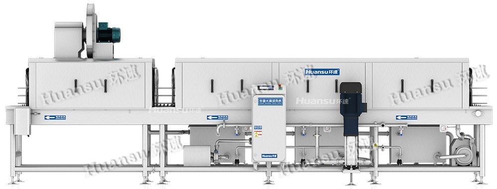 隨著食品工業(yè)化的快速發(fā)展,越來越多的食品廠家開始使用機械設備來代替人工進行部分的工作,從而減少人工成本,提高標準。其中一些盛放食材的塑料筐的清洗便有了塑料筐清洗機來進行清洗,但是使用機械清洗也存在著很多的弊端,如清洗不透徹帶來很多食品安全隱患;風干不透徹,降低了容器使用效率;清洗過程添加大量清洗劑與消毒劑,對工廠車間造成排放困擾;設備本身無法清洗透徹,容易滋生大量細菌,成為二次污染源。為了解決以上問題,環(huán)速研發(fā)人員研發(fā)了可加裝風干與烘干的塑料筐清洗機,提高清洗效率。