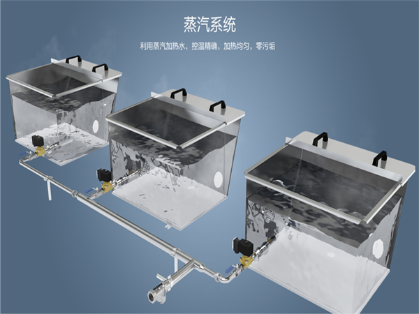 3.水箱加熱方式:發(fā)熱管直接加熱發(fā)熱體均勻布置,也可使用蒸汽加熱,自帶溫度均衡,上升速度快。