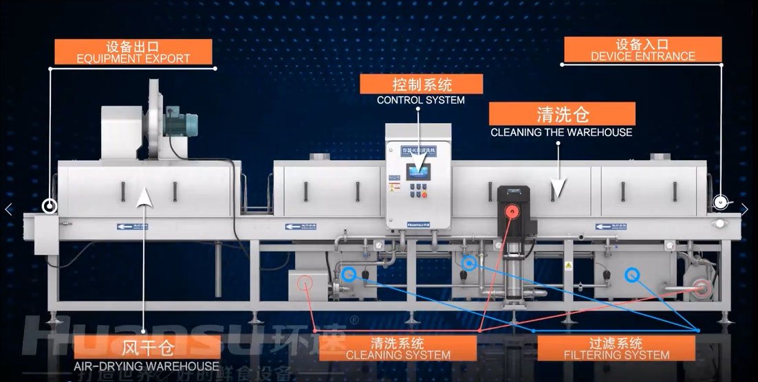 環(huán)速有包含清洗和干燥的設備型號,若選擇這種型號,食品周轉筐可以在清洗完成后立即投放使用,即使不立即使用也能防止因為長時間有水滴導致細菌快速滋生的問題。