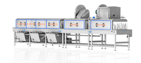 環(huán)速周轉(zhuǎn)筐清洗烘干機采用高溫高壓水,能夠清洗各種行業(yè)的筐、盤、箱等容器。每小時可清洗200-900個容器。清洗速度快、清洗效率高,無需添加清洗劑,360°無死角清洗。可加裝風(fēng)干、烘干系統(tǒng)。根據(jù)人體工學(xué)設(shè)計,使用簡單方便。整機采用SUS304不銹鋼材質(zhì),清洗底槽一體加工而成,清洗方便;所有管路無縫焊接,連接管可拆卸不存水;清洗完成后通過風(fēng)干、烘干系統(tǒng)去除容器表面的水分。