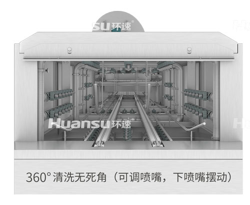 環(huán)速周轉(zhuǎn)筐快速清洗機(jī)采用高壓水進(jìn)行清洗,無清洗死角,以確保它能夠清洗到所有角落和邊緣,同時(shí)也能夠調(diào)整水流的強(qiáng)度和方向。這種清洗方式可以有效地去除各種污垢,讓周轉(zhuǎn)筐煥然一新。此外,環(huán)速周轉(zhuǎn)筐快速清洗機(jī)還可以根據(jù)用戶需求自動(dòng)調(diào)節(jié)清洗速度和水溫,使用高溫水對(duì)周轉(zhuǎn)筐進(jìn)行巴氏滅菌,以確保直接接觸食品的周轉(zhuǎn)筐的衛(wèi)生。