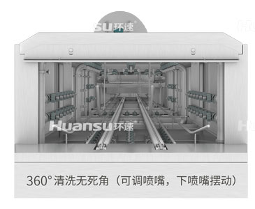 容器滅菌清洗機(jī)是環(huán)速產(chǎn)品生態(tài)中“容器清洗”板塊的主打產(chǎn)品。它通過高溫滅菌和高壓水洗相結(jié)合的方式對各種周轉(zhuǎn)筐、周轉(zhuǎn)盤、周轉(zhuǎn)箱進(jìn)行滅菌清洗。視容器大小與臟污程度的不同,每小時可清洗200-900個容器,不僅清洗速度快,而且洗得干凈。那么,為什么容器滅菌清洗機(jī)有這樣“多快好省”的清洗能力呢?這就要說到四步快速清洗法。