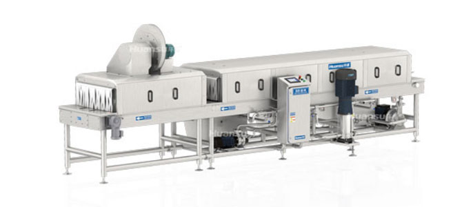 經(jīng)過四步清洗,容器已經(jīng)潔凈如新,然而還有大量的水分殘留在容器上,需要晾干才能投入使用。然而水分殘留又使容器極容易受到二次污染,導致滋生細菌。針對這一問題,容器清洗機還特別設有風干和烘干兩種方案,客戶可根據(jù)需要自行選擇。風干是利用環(huán)速設計的風刀裝置,產(chǎn)生高速氣流將容器表面的水分吹干;烘干則是利用蒸汽對風刀進行加熱,產(chǎn)生高溫熱風,干燥結果更突出。如果對容器的濕度有更高的要求,可以同時選配風干、烘干功能,也可以加裝多組風干烘干模塊。