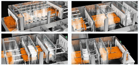 那么,環(huán)速容器滅菌清洗機,是如何進行容器的清洗與滅菌的?與人工清洗相比又有哪些優(yōu)勢?先來了解它的清洗流程:它采用四步快速清洗的流程設(shè)計,整個清洗段分為:預(yù)洗、主洗、漂洗、凈洗四個階段,各有不同的分工。預(yù)洗利用大流量的高溫高壓水霧將容器全面打濕,把頑固污漬泡脹泡軟,方便后續(xù)的清洗;主洗則利用高溫高壓水柱對筐體進行全方位的沖洗,把經(jīng)過軟化松動的附著物剝離;漂洗是利用較為潔凈水流進行沖漂,去除虛附在容器表面的浮沫和污水;凈洗是用常溫外接自來水進行沖洗,將容器沖刷干凈,并使之恢復(fù)常溫。