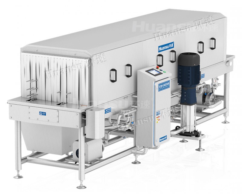 容器滅菌清洗機(jī)通過(guò)高溫(80℃以上)高壓(0.2~0.7Mpa)清洗,實(shí)現(xiàn)周轉(zhuǎn)筐、托盤洗凈滅菌的目的,通過(guò)高壓大流量風(fēng)刀,去除容器表面水分;高溫烘干系統(tǒng)可去除周轉(zhuǎn)筐、托盤殘留水分,對(duì)容器進(jìn)行再次滅菌,實(shí)現(xiàn)容器快速周轉(zhuǎn)使用的目的。