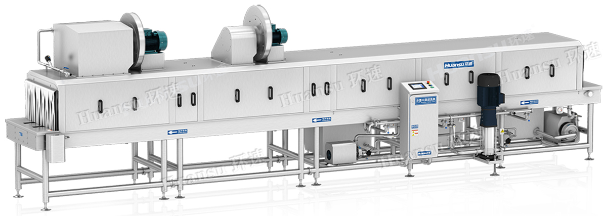1.快速高質(zhì):容器清洗速度200-1800只/小時,滅菌清速度1000-1200只/小時,通過專有的“四步快速清洗”方式使容器煥然一新(高溫高壓清洗滅菌)。將容器由衛(wèi)生環(huán)鏈輸入清洗機中,依次通過預洗段、高壓清洗段、漂洗段、凈水清洗段,(風干或烘干段)。實現(xiàn)360°無死角滅菌;利用康達效應(yīng)設(shè)計的風結(jié)構(gòu),風刀角度、高度可根據(jù)容器形狀輕松調(diào)整,提升周轉(zhuǎn)使用效率;高溫烘干系統(tǒng)可對容器進行高溫滅菌并去除容器表面水分,提高容器周轉(zhuǎn)效率。